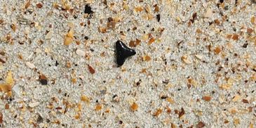Developing at "eye" for shark teeth is for real!! Dark, triangular and shiny, three characteristics to keep in mind. They can be anywhere. In a gravel bed, amongst seashells, along the water line, in the bottom of a creek, in the sand. Also, talk to others who are hunting, some are super helpful and want you to be successful too and they will share best spots or techniques.