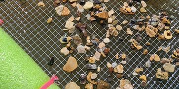 SHARK TEETH!! and other fossils depending on your location. Some teeth will be broken some will be tiny and some will be perfect specimens. For us everything is a keeper unless we just can't tell if it's significant or not. Other fossils include fossilized bone, seashells, ammonites, crinoids and marine invertebrates.